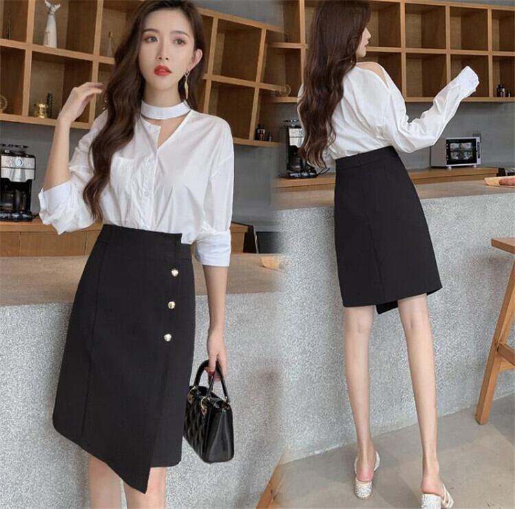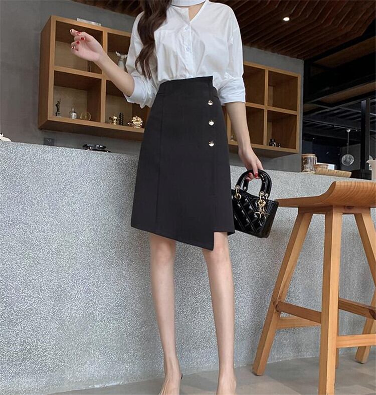 韓国版 ハイウエスト イレギュラー スカート スリット
