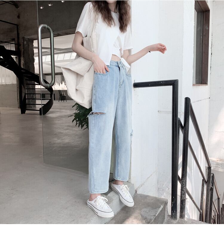 ワイドパンツ ハイウエスト ダメージデニムパンツ ロングパンツ