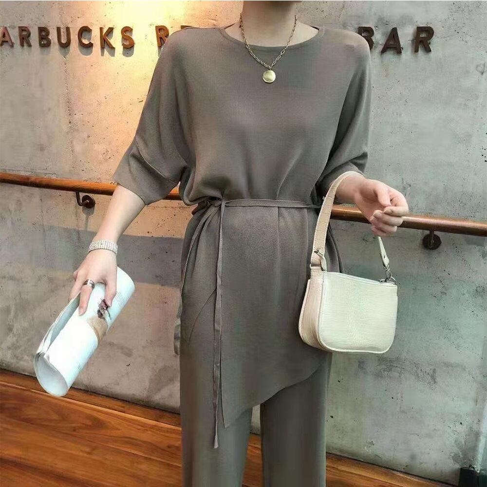 無地 上下セット/ウエストマーク春夏/韓国ファッション