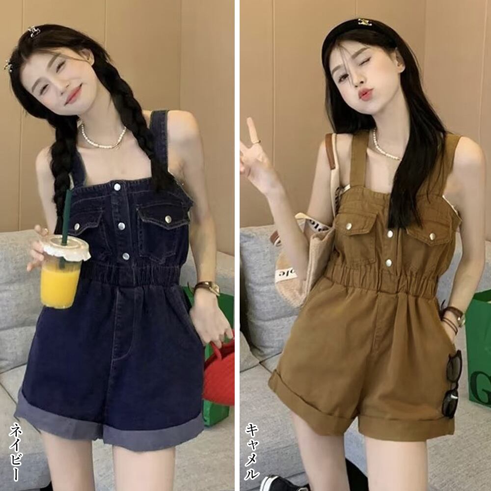 レディース デニムパンツ ショートオーバーオール 韓国ストリート カジュアル レトロ着やせつなぎパンツ ハイウエスト美脚
