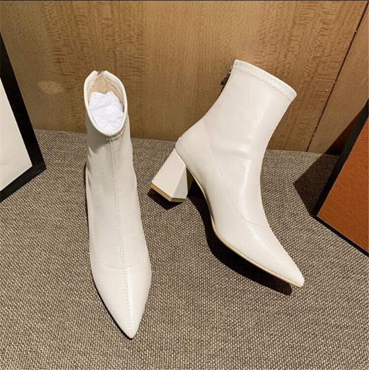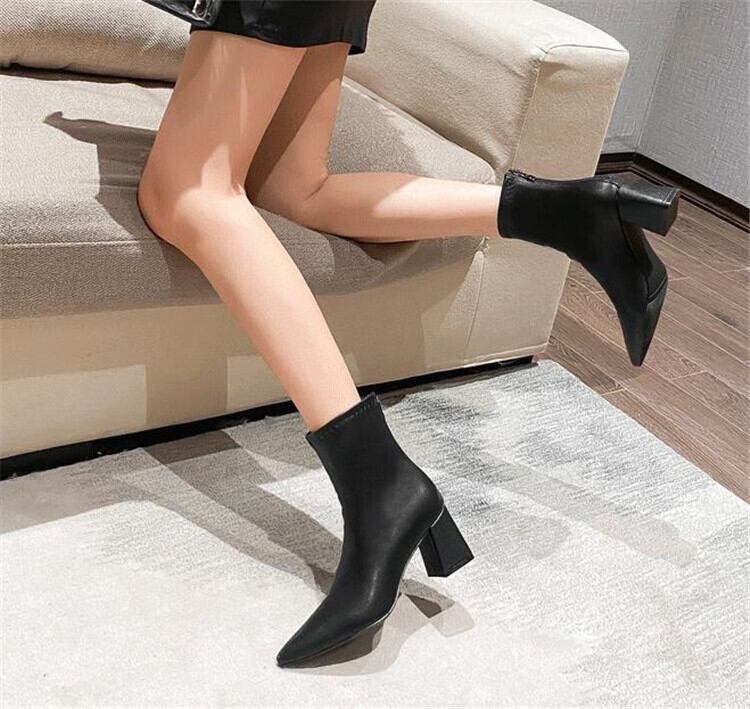ショートブーツ ポインテッドトゥ ハイヒールシューズ 裏起毛 スキニーブーツ 柔らかい肌