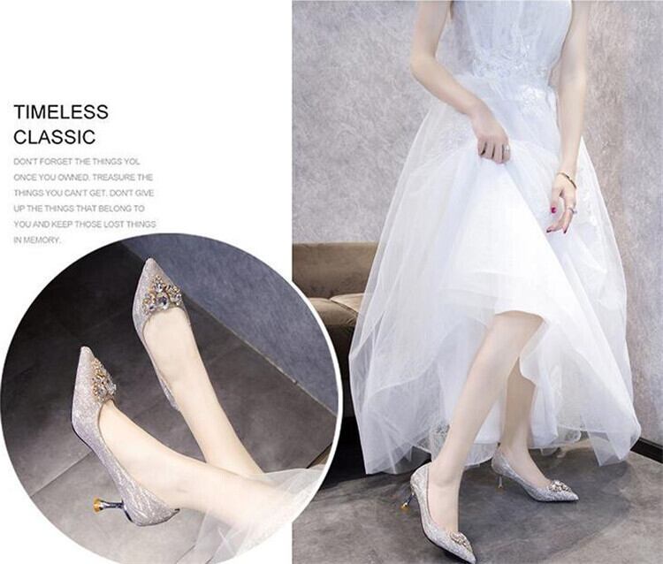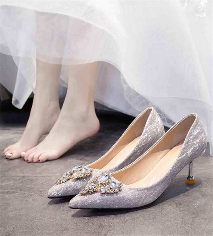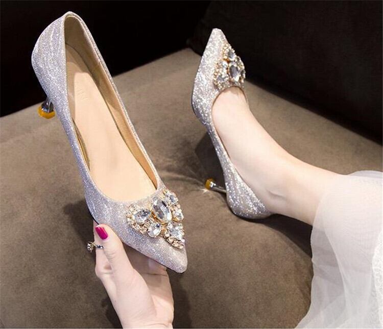 ウェディングシューズ スプリング ポインテッドシューズ スパンコール