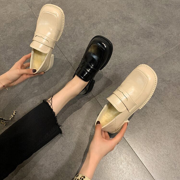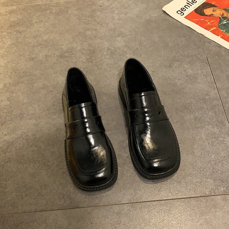小さな革の靴 ファッション 百掛け 太いヒール スクエアヘッド セットフィート ローファー