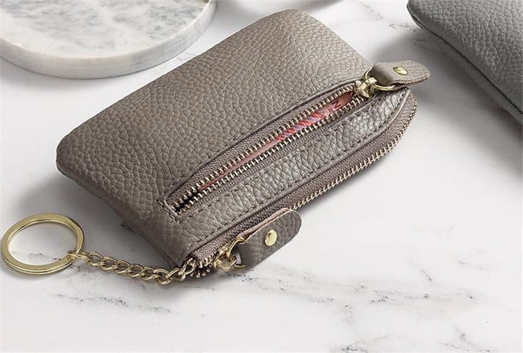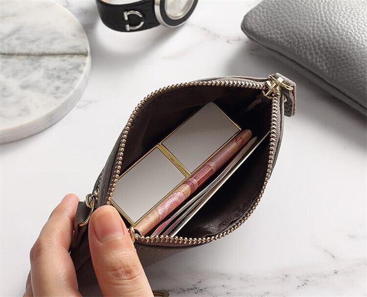 牛革 短いスタイル ダブルジッパー 本物の革 コイン巾着