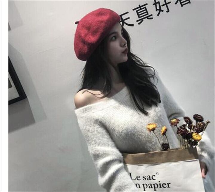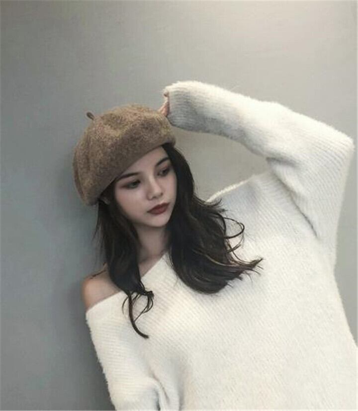 百掛け 厚手 レトロ 秋 冬 ニット 快適である 折りたたみ式 小さな顔 ベレー帽