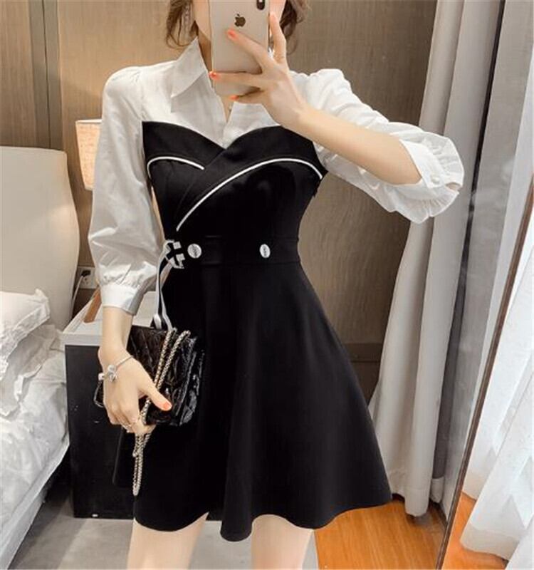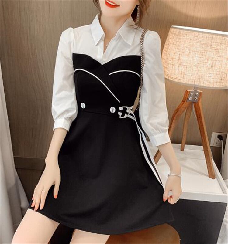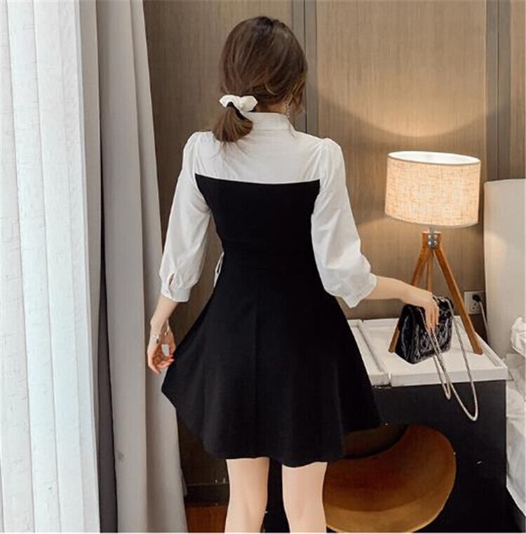 ワンビース 女性 エレガント レトロ フェイク2ピース 長袖