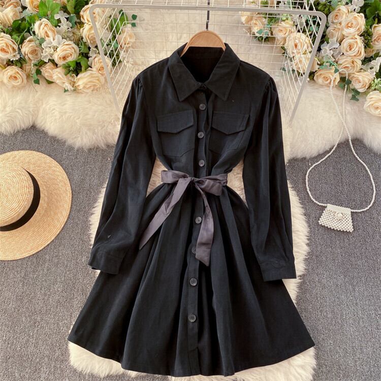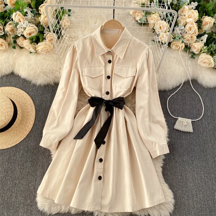 着用 気質 ラペル レトロ モーメントスリム ショートワンビース
