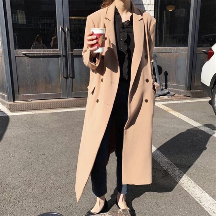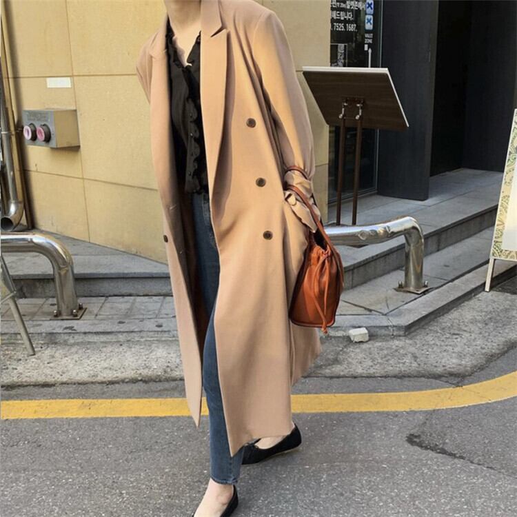 中・長セクション コート ゆったりする 女性 百掛け ダブルボタン シンプル カジュアル