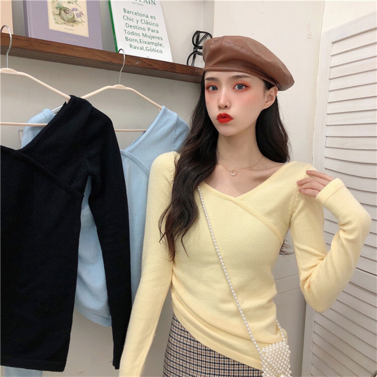 短いスタイル セーター 長袖 トップ スリムフィット カジュアル