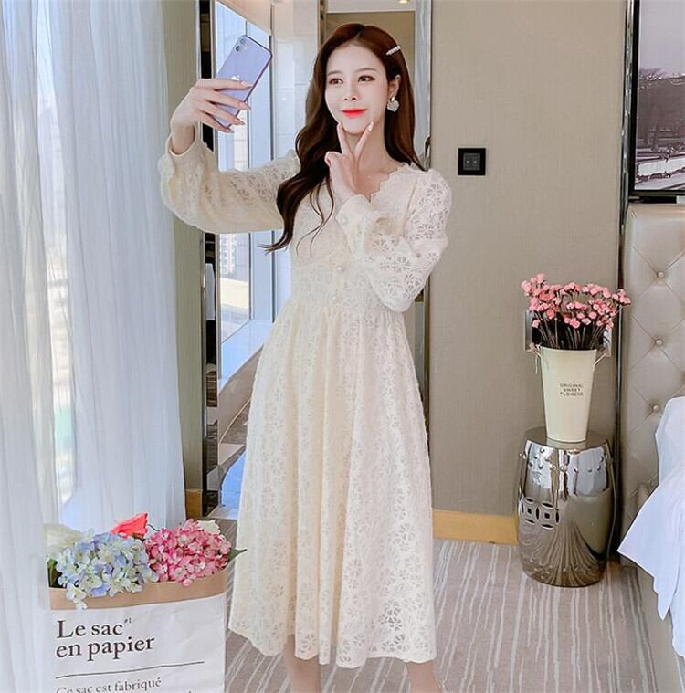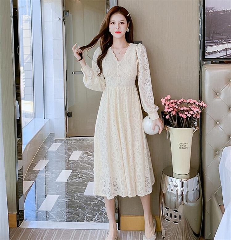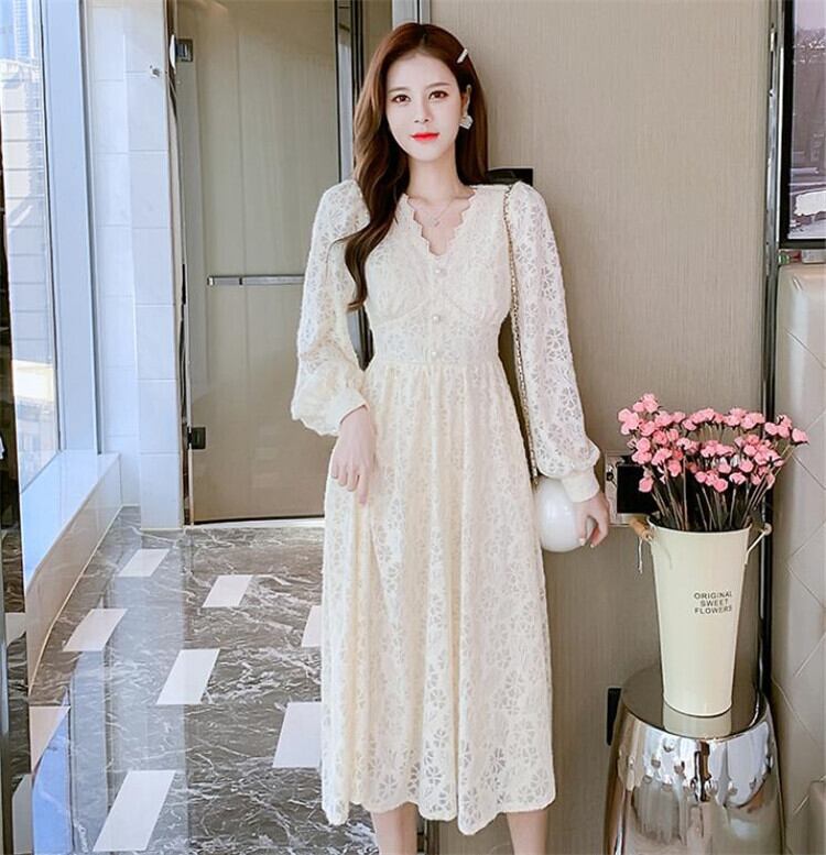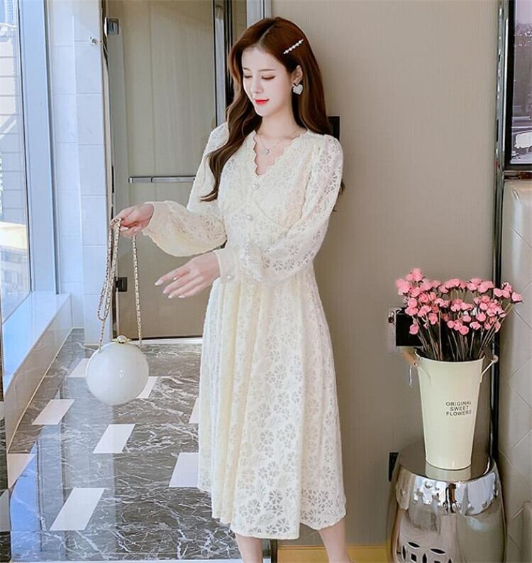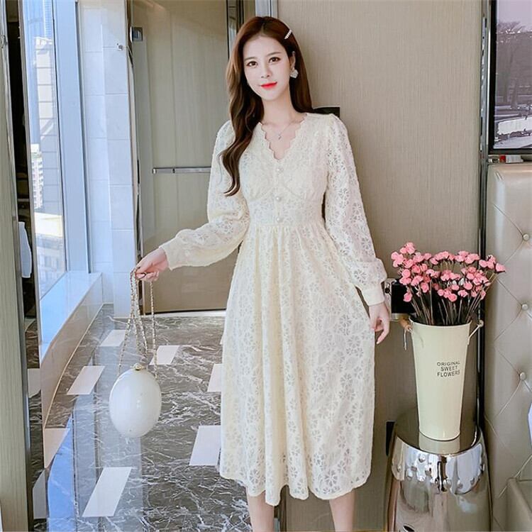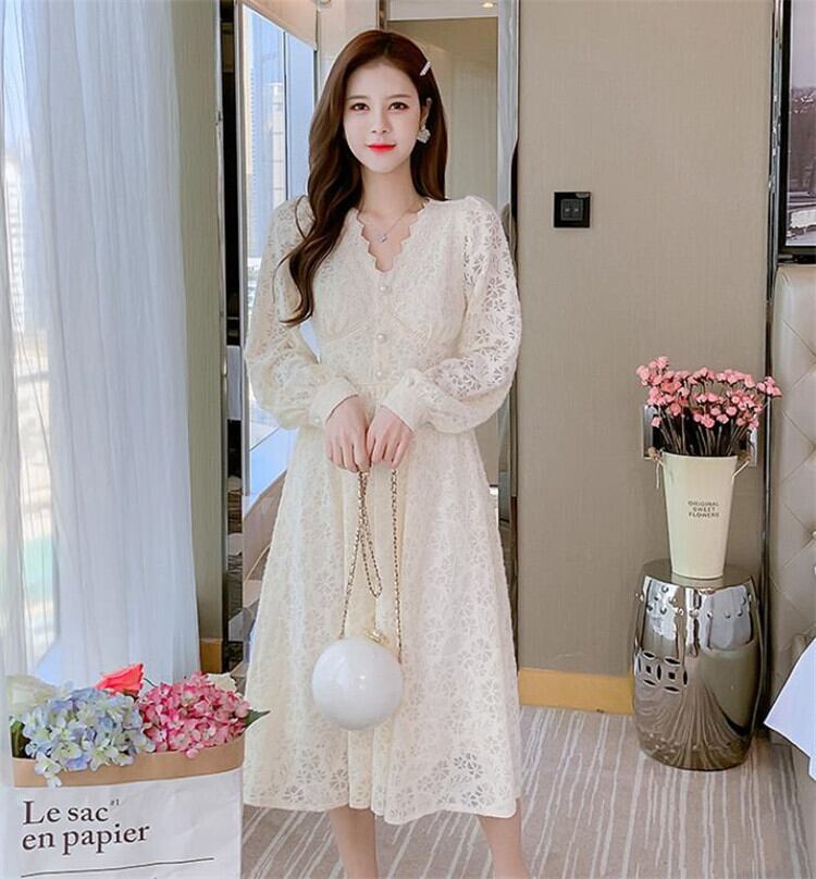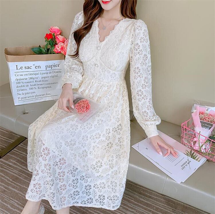 レース Vネック 長袖 ワンビース スリム sweet系 おしゃれな 百掛け お出かけ