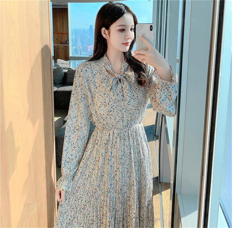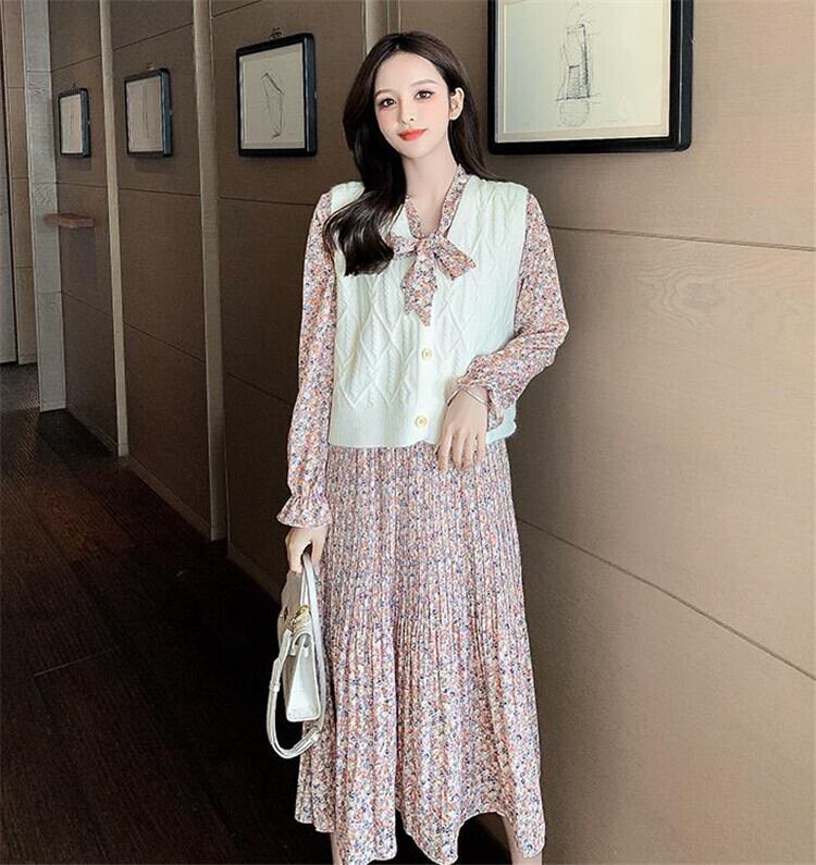 セーター ベスト スリム プリーツ シフォン 長袖 ワンビース 蝶結び おしゃれな 大人気 sweet系