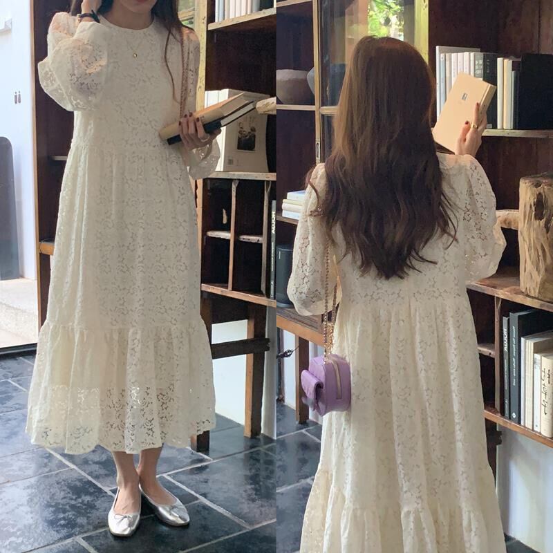 ワンピース レースワンピース ラウンドネック ロング丈 レディース おしゃれ